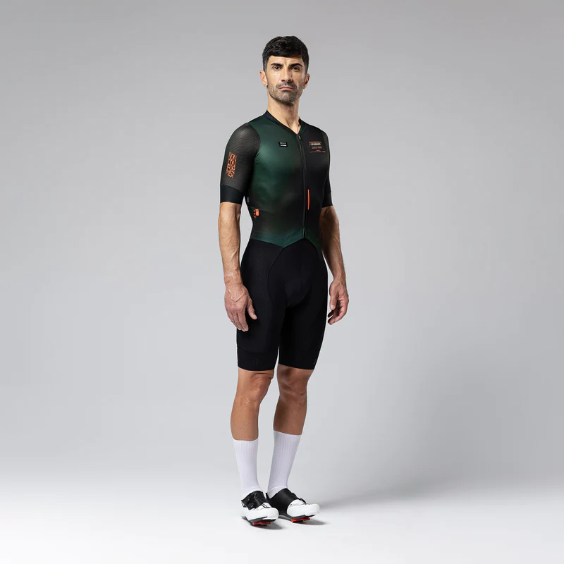 Prenda de gran rendimiento aerodinámico, resultado de la unión del culotte corto Absolute y una parte superior inédita e innovadora. Elaborado con tejidos que aportan elevados índices de transpiración, secado y comodidad.