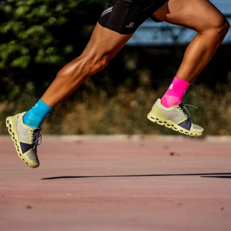 Tejidos de alta calidad con un nuevo comfort. Añadimos un extra de refuerzo en la planta del pie, consiguiendo un calcetín con una comodidad óptima para la práctica del triatlón y running.