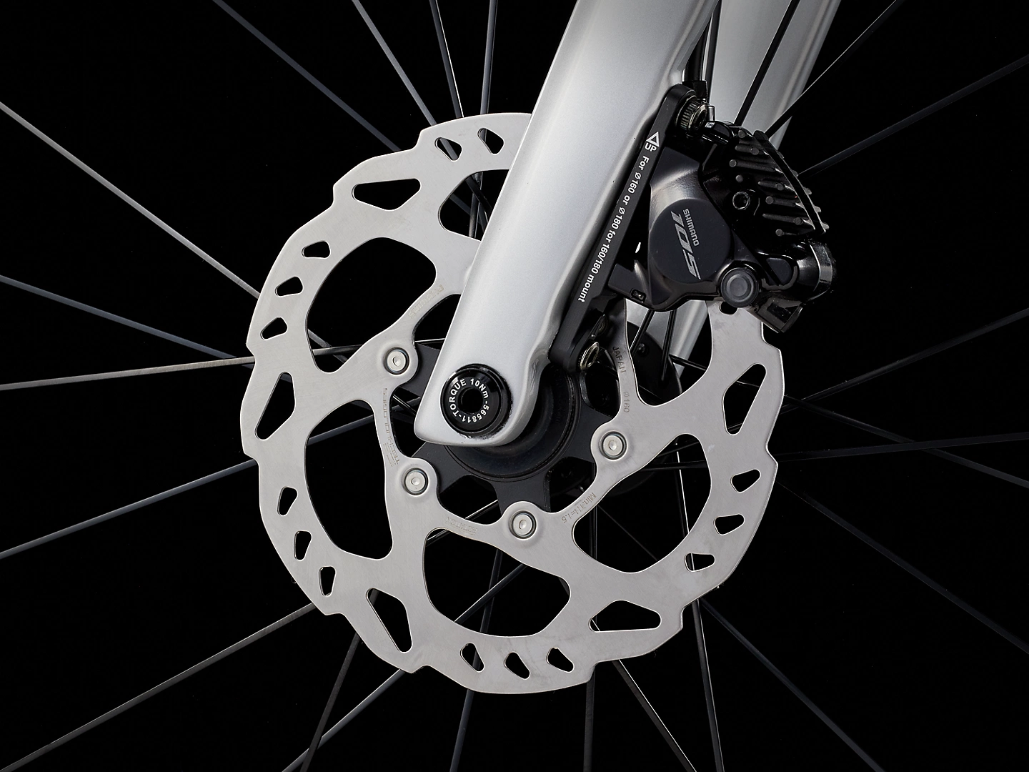 Cuadro y horquilla ligeros y aerodinámicos de carbono OCLV Serie 500, transmisión electrónica inalámbrica Shimano 105 Di2, ruedas de carbono Bontrager Aeolus Elite 35 y potentes frenos de disco Ultegra.