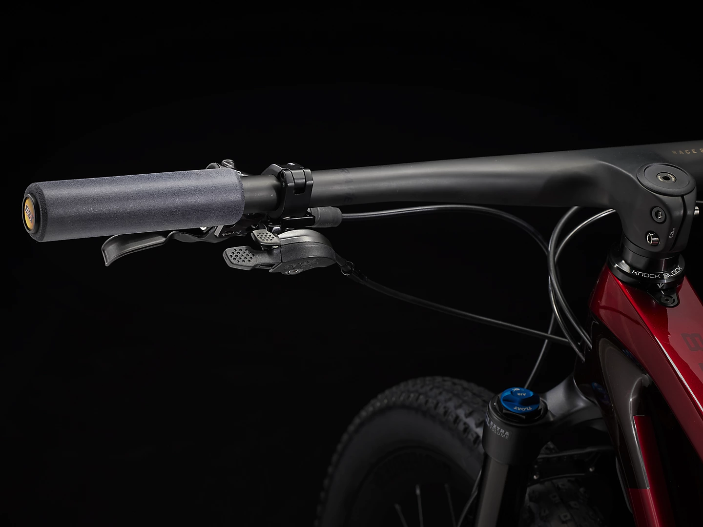 Cuadro de carbono ligero y rígido con IsoSpeed que permite absorber las irregularidades de los senderos, horquilla ligera FOX Step-Cast con bloqueo remoto, transmisión Shimano XT suave y silenciosa con bielas de carbono ultra ligeras y ultra rígidas, tija y manillar de carbono a juego y ruedas de carbono Bontrager Kovee Elite 30 ultra anchas y ultra rápidas con buje Rapid Drive que proporciona una aceleración inmediata desde la línea de salida.